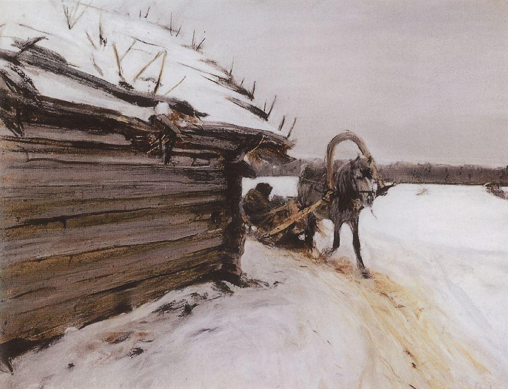 Серый цвет обычно считают каким-то символом бесцветности и уныния. Нужно абсолютное внутреннее зрение чтобы увидеть в сером цвете глубинную палитру, чьи оттенки гораздо более значительны, гораздо больше говорят тебе о твоем существовании, чем любое красочное огнецветье. Посмотрите на серовскую картину "Зимой".