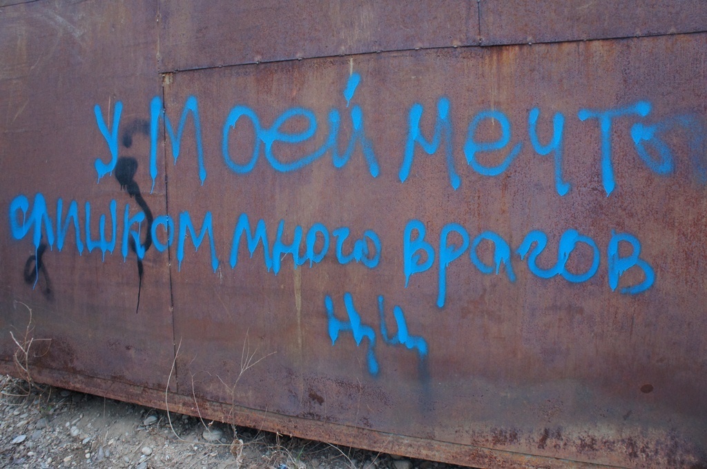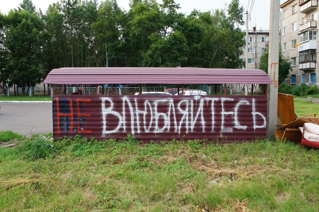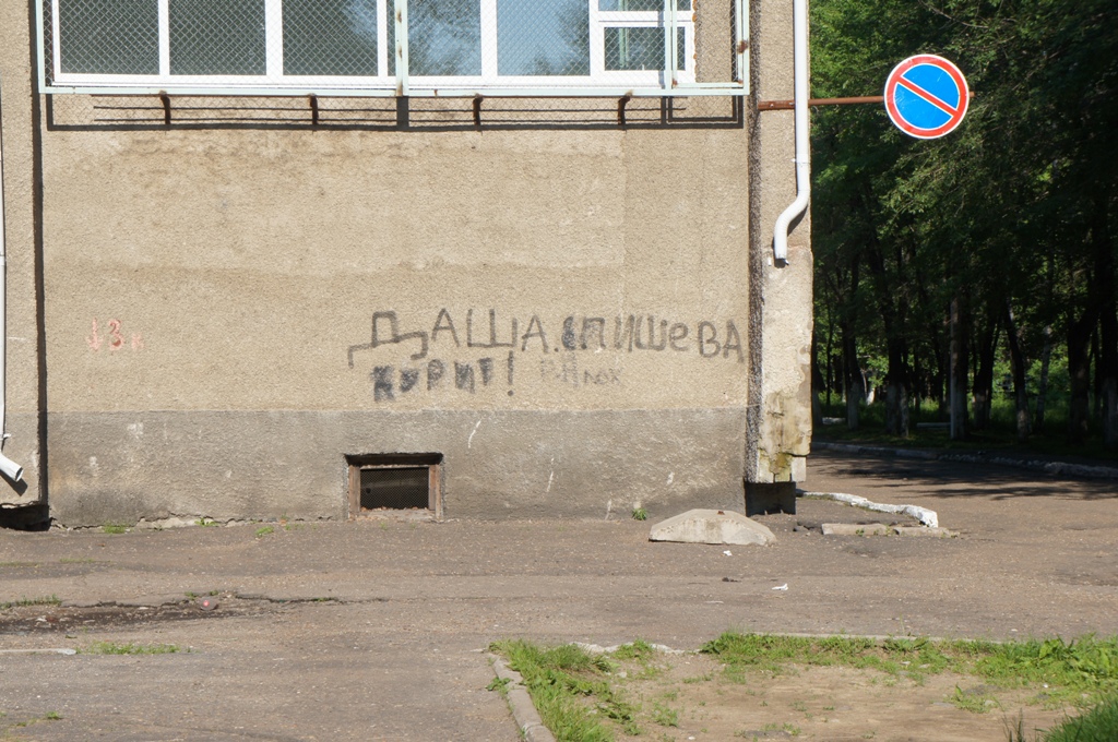 В Биробиджане, как и любом другом городе, можно увидеть различные надписи на стенах и заборах. По сути, они являются своеобразной неотъемлемой частью городской культуры. Некоторые из них вполне можно назвать философскими.