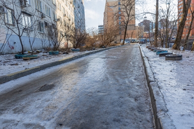 Черный снег во дворах на ул. Ш-А. Фото: Александр Музыка, ИА EAOMedia