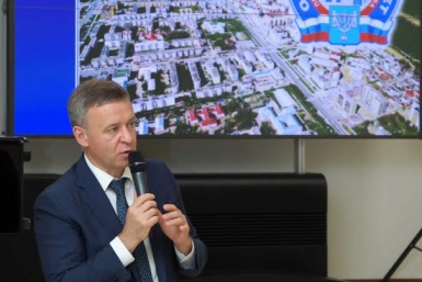 С докладом о наиболее актуальных проблемах городского округа и путях их решения перед членами совета выступил мэр Сергей Надсадин