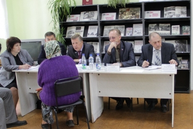 На встречу с населением прибыл внушительный десант чиновников во главе с первым зампредом правительства области Виктором Гожим