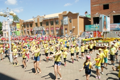 300 школьников Биробиджана в едином порыве призвали соблюдать правила дорожного движения