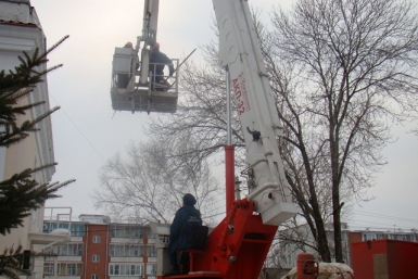 МЧС выделило пожарный подъемник для очистки крыш от снега и сосулек (ФОТО)