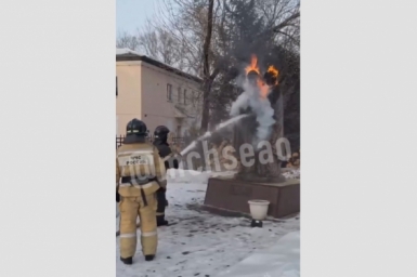 Памятник Петру и Февронии вспыхнул на территории кафедрального собора в Биробиджане