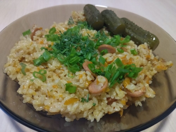 Такой аля-плов отлично сочетается с маринованными огурчиками и любым овощным салатом.