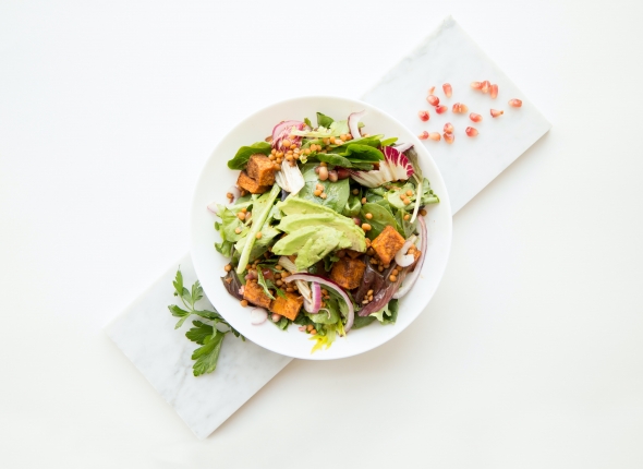Если вам захочется дополнительно украсить салат, дополните его при подаче кубиками голубого сыра и измельченными грецкими орехами или фундуком.