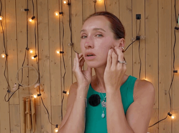 Ладони поставьте рамкой на лице и слегка подтяните кожу вверх и в стороны. Не тяните сильно, лишь задайте направление. Сформируйте "А — О" губами, вытянув их вперёд, особенно уголки. Держите натяжение 30 секунд.
