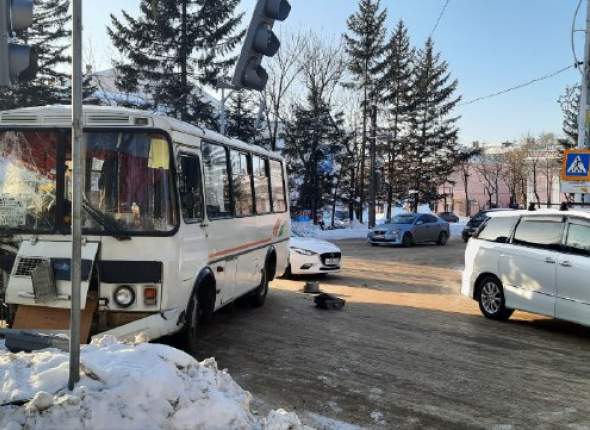 Как передает пресс-служба ведомства, водитель пассажирского автобуса при повороте не учел скоростной режим, в результате не справился с управлением и врезался в металлическую опору светофора.