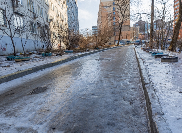 Причиной получения травмы явилась наледь на тротуаре, так как работы по устранению скользкости управляющей организацией не проведены.