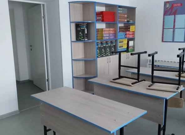 В ходе работ проведён комплексный ремонт помещений: выровнены стены, уложено современное напольное покрытие, установлена новая мебель, школьные доски и специализированное оборудование для учебных классов.