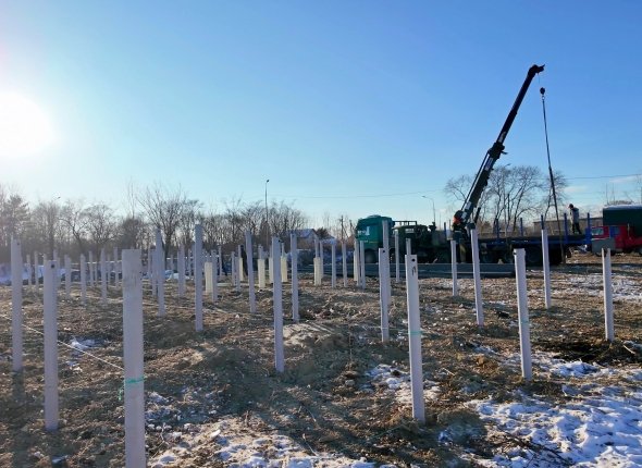 В конце января текущего года подрядной организацией завершено устройство фундамента из буронабивных свай. На следующем этапе планируется укрепить тело фундамента и прилегающую территорию с использованием скального грунта. Строительные работы ведутся согласно графику.