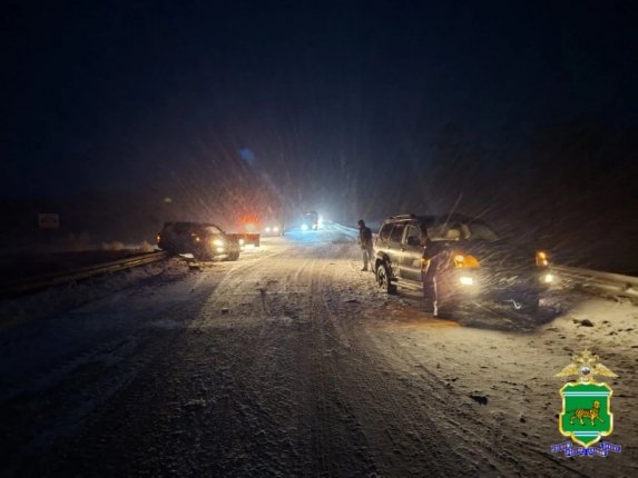 По предварительным данным, 22.02.2026 года в 19.00 на ФАД "Чита-Хабаровск" в Облученском районе ЕАО водитель автомобиля "Тойота Ланд Крузер" не учел состояние дорожного покрытия, не справился с рулевым управлением и совершил столкновение со встречно движущимся автомобилем "Тойота Ланд Крузер Прадо".