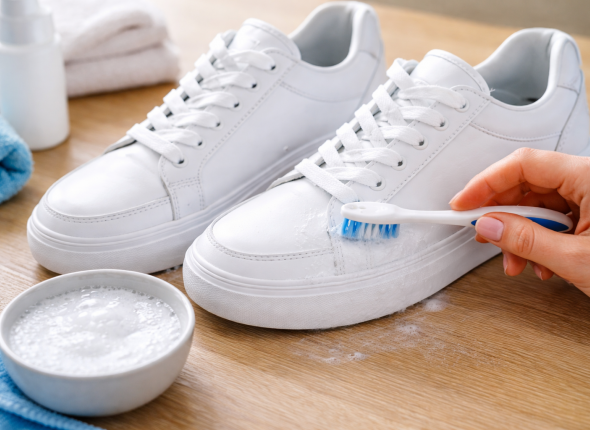Белые кроссовки легко пачкаются, а обычная стирка не всегда справляется с серым налётом и въевшимися пятнами. В таких случаях помогает простой состав для ручной чистки.