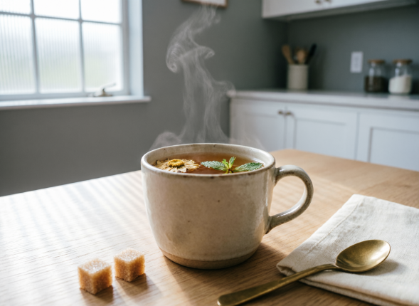 Речь идет о настое ромашки с мятой и щепоткой фенхеля. Эти травы веками использовались для поддержки пищеварения. Они расслабляют гладкую мускулатуру кишечника, снижают газообразование и помогают организму завершить переваривание до сна.