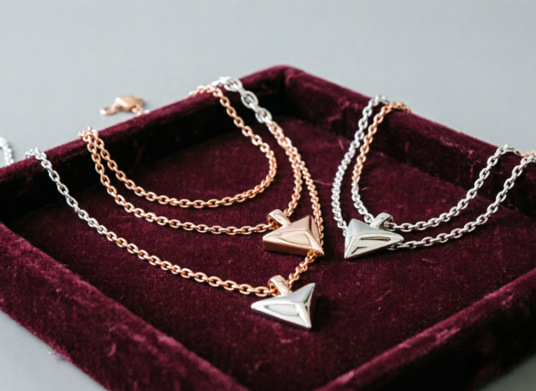 Запомните лайфхак: V-образная удлиненная цепочка с компактной прямоугольной подвеской визуально вытягивает шею и мягко акцентирует декольте. Добавьте хотя бы одну такую в свой образ — и он заиграет по-новому, станет легче и выразительнее и даже немного омолодит.