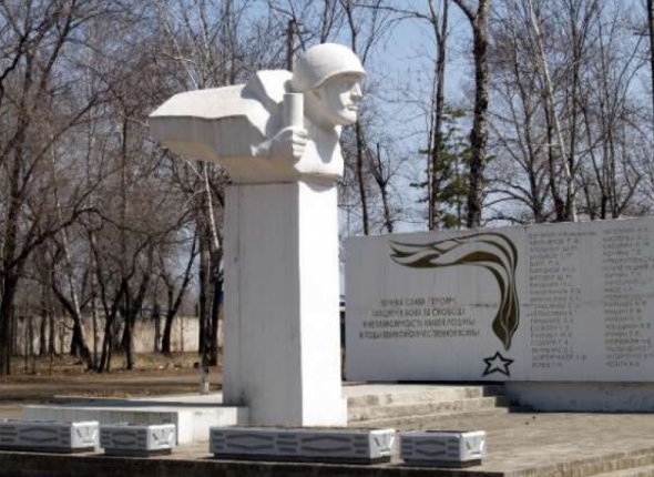 Первый военный памятник в Биробиджане был открыт 9 мая 1965 года. Его установили работники завода "Дальсельмаш" в память о бывших товарищах по труду, которые пали на полях Великой Отечественной войны.