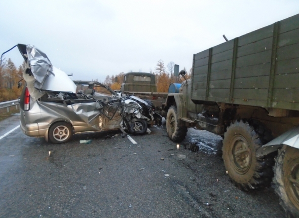 EAOMedia, 12 октября 2015. 10 октября в 02.50 на 1987 км автодороги "Чита-Хабаровск" Биробиджанского района 34-летний водитель, житель г. Якутска, управляя автомобилем "Тойота Лит Айс Ноах", неправильно выбрал скорость движения, при возникновении опасности для движения не принял мер к снижению скорости, вплоть до полной остановки транспортного средства, совершил наезд на остановившейся буксируемый автомобиль "ЗИЛ-131", которого буксировал на жесткой сцепке другой автомобиль "ЗИЛ-131". В результате дорожно-транспортного происшествия водитель автомобиля "Тойота Лит Айс Ноах" от полученных травм скончался на месте автоаварии. На проезжей части позади автомобиля "ЗИЛ" имелись фрагменты знака аварийной остановки, сообщили ИА ЕАОMedia в областной ГИБДД.