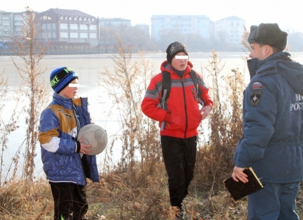В ходе очередного рейдового мероприятия спасатели заметили в районе замерзающего залива по ул. Невской в Биробиджане мальчишек с мячом. Дети без контроля со стороны взрослых вышли на тонкий лед и гоняли мяч. Увидев инспекторов ГИМС, один из них заплакал. Оказалось, что об опасности провала под неокрепшее ледяное полотно они знают, но уроки закончились слишком рано, и, поэтому ребята решили в свободное время проверить все-таки лед на прочность. Государственный инспектор по маломерным судам Дмитрий Чмутин переписал фамилии и имена мальчиков, выяснил, в какой школе они учатся, чтобы потом адресно прийти к ним в класс с тематической беседой, сообщили ИА ЕАОMedia в пресс-службе ГУ МЧС России по ЕАО.
