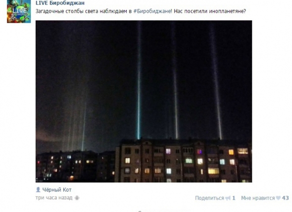 Загадочные столбы света в Биробиджане некоторые форумчане объяснили вторжением НЛО. Фото: Фото: скриншот страницы в Интернете