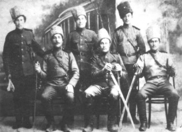 Казаки из Надеждинского — Лапшин Никита Андреевич (крайний слева) и Лапшин Егор Андреевич