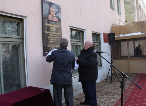 EAOMedia, 16 марта 2016. Мемориальную доску ректору Приамурского государственного университета в 2006-2014 годах Льву Гринкругу открыли 15 марта в Биробиджане. В церемонии принял участие руководитель Законодательного Собрания ЕАО и председатель Попечительского совета вуза Анатолий Тихомиров. В своем выступлении он отметил большой вклад Льва Гринкруга в развитии базового вуза области, сообщает ИА ЕАОMedia со ссылкой на пресс-службу областного парламента.