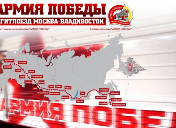 EAOMedia, 26 апреля 2016. Биробиджан вошел в число 24 городов, где пройдут мероприятия информационно-пропагандистской акции "Агитпоезд – Армия Победы". Специальный состав сделает остановку в столице Еврейской автономии 6 мая. Организаторы планируют проведение всех мероприятий с 10.20 до 12.20, сообщает ИА ЕАОMedia со ссылкой на сайт Минобороны России.