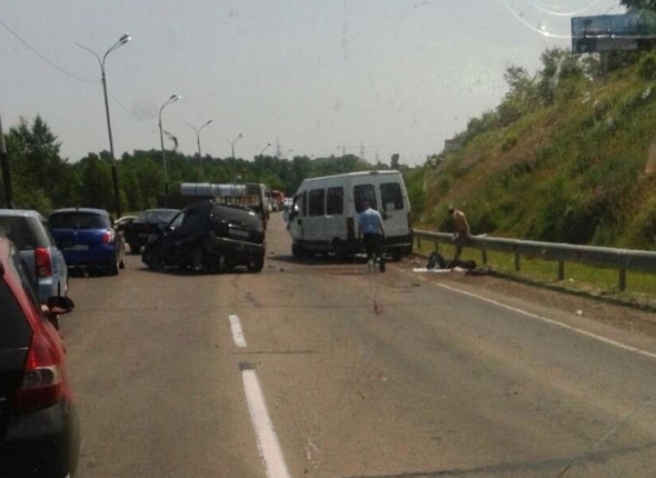 По свидетельству очевидцев, водитель черной иномарки, двигаясь в сторону ЕАО, на подъезде к Амурскому мосту задел правой стороной бордюр, после чего потерявший управление автомобиль вылетел на встречку, где и произошло лобовое столкновение с маршруткой №302 Хабаровск-Ленинское.