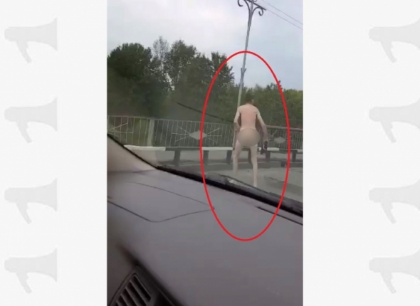 Абсолютно голый мужчина стал героем 13-секундного ролика, снятого на автомобильный регистратор в Биробиджане. Шокирующее и одновременно пикантное зрелище, развернувшееся на старом мосту через Биру, заставило притормозить водителей и стало причиной мини-пробки. Любопытное видео в стиле ню теперь активно "гуляет" среди пользователей популярных мессенджеров для смартфонов и в соцсетях, передает корр. ИА ЕАОMedia.