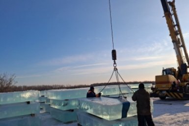 Лед для новогодних городков заготавливают на карьере Логово Скорпиона в Биробиджане
