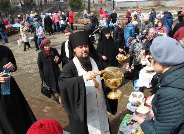 Церемония освящения пасхальных куличей в Биробиджане, 15 апреля 2017 г